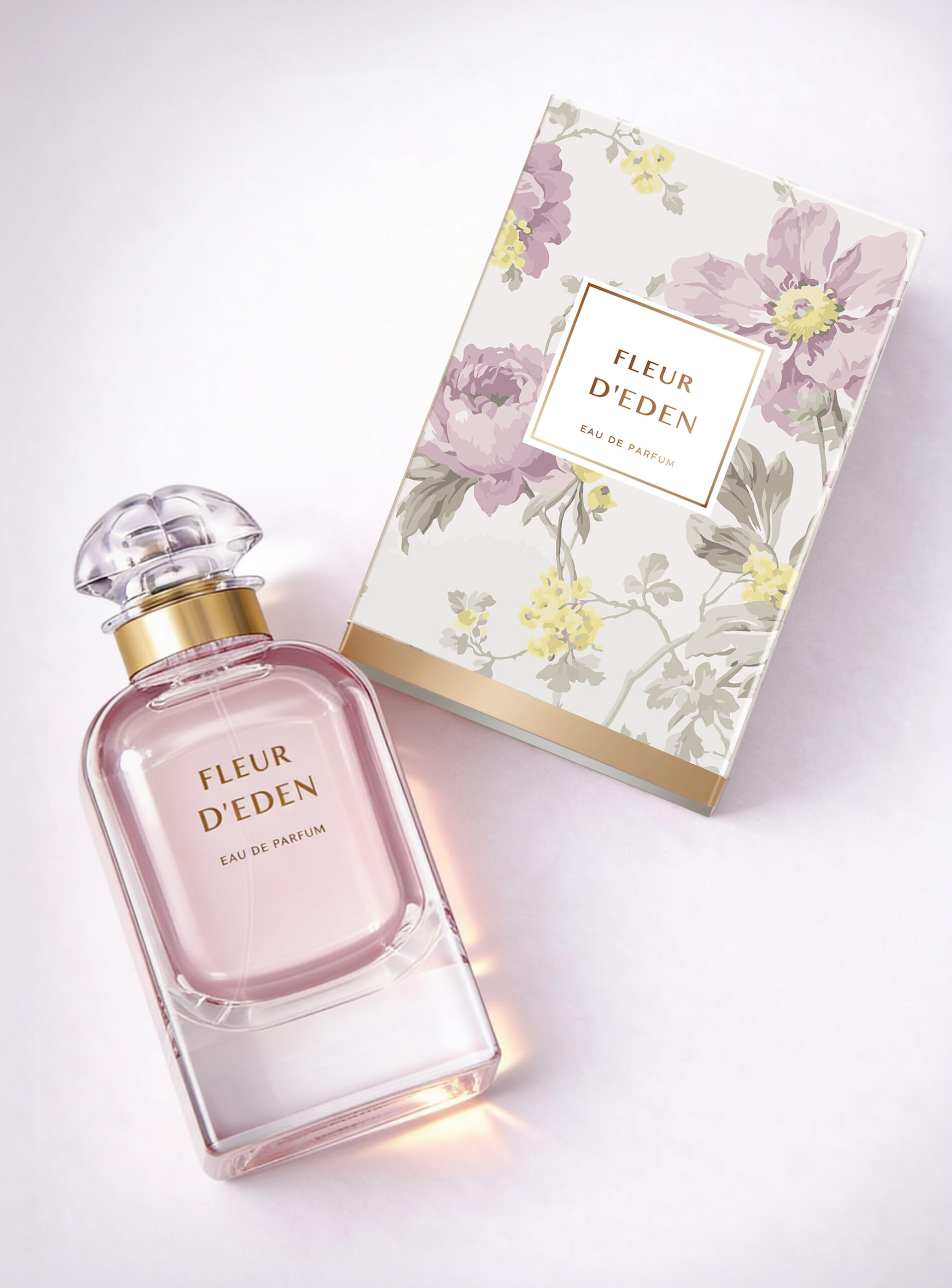 Fleur d’Eden demonstrates Anisha’s ability to elevate a standard bottle into a cohesive fragrance concept through careful component selection and considered packaging design. A standard cap and bottle cap were paired with a beautifully crafted box to create an elegant floral presentation for Copaci in Ivory Coast. The result is a cost-effective yet distinctive packaging solution with a strong premium feel.