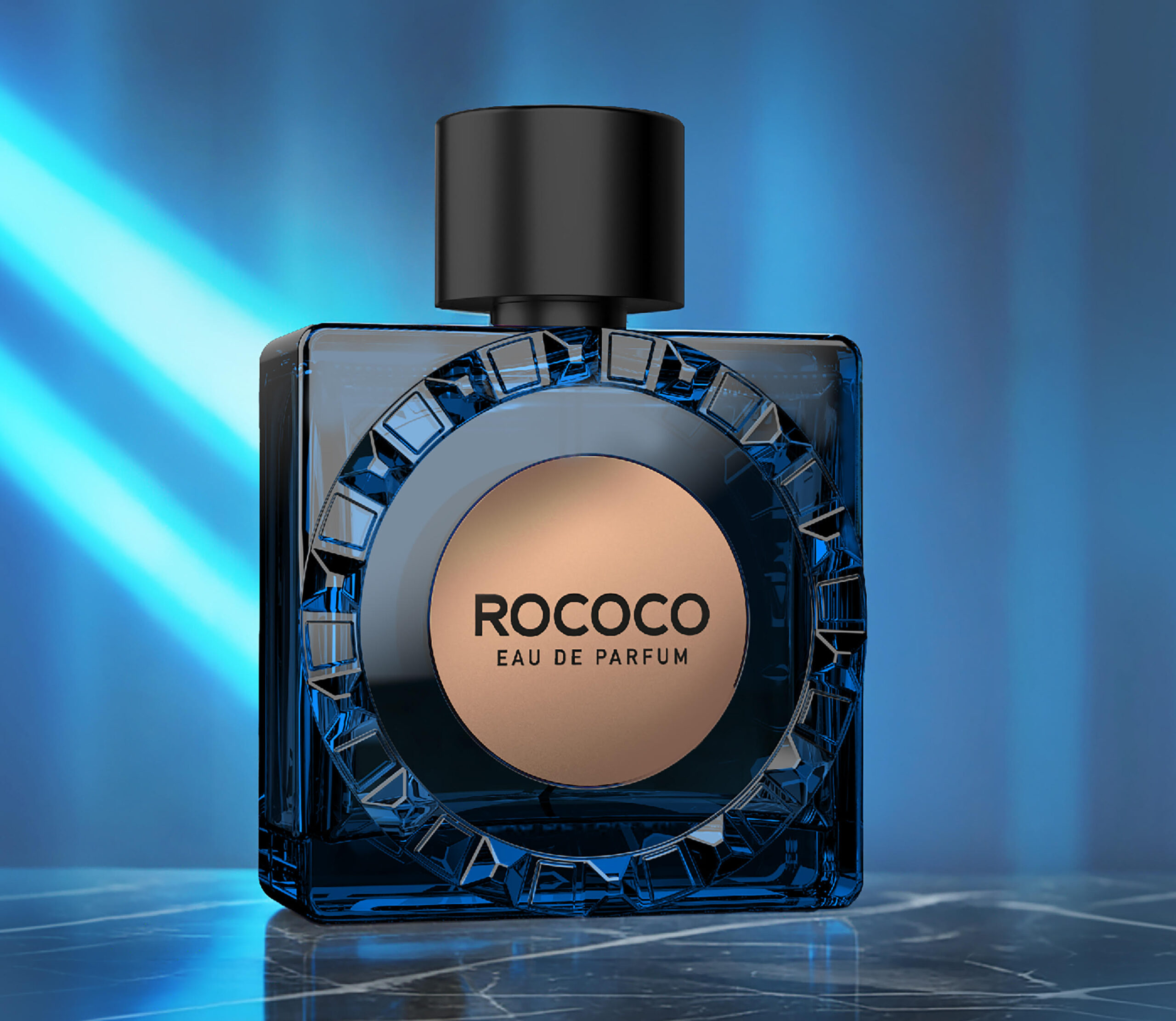 Rococo bottle set draws on the language of jewel-like embellishment and elaborate decoration to create a bottle with a sense of richness and character. Its simple curved-square silhouette and minimalist cap balance the ornamental detailing, resulting in a design that feels opulent yet accessible. The concept was created for the West African perfume market.