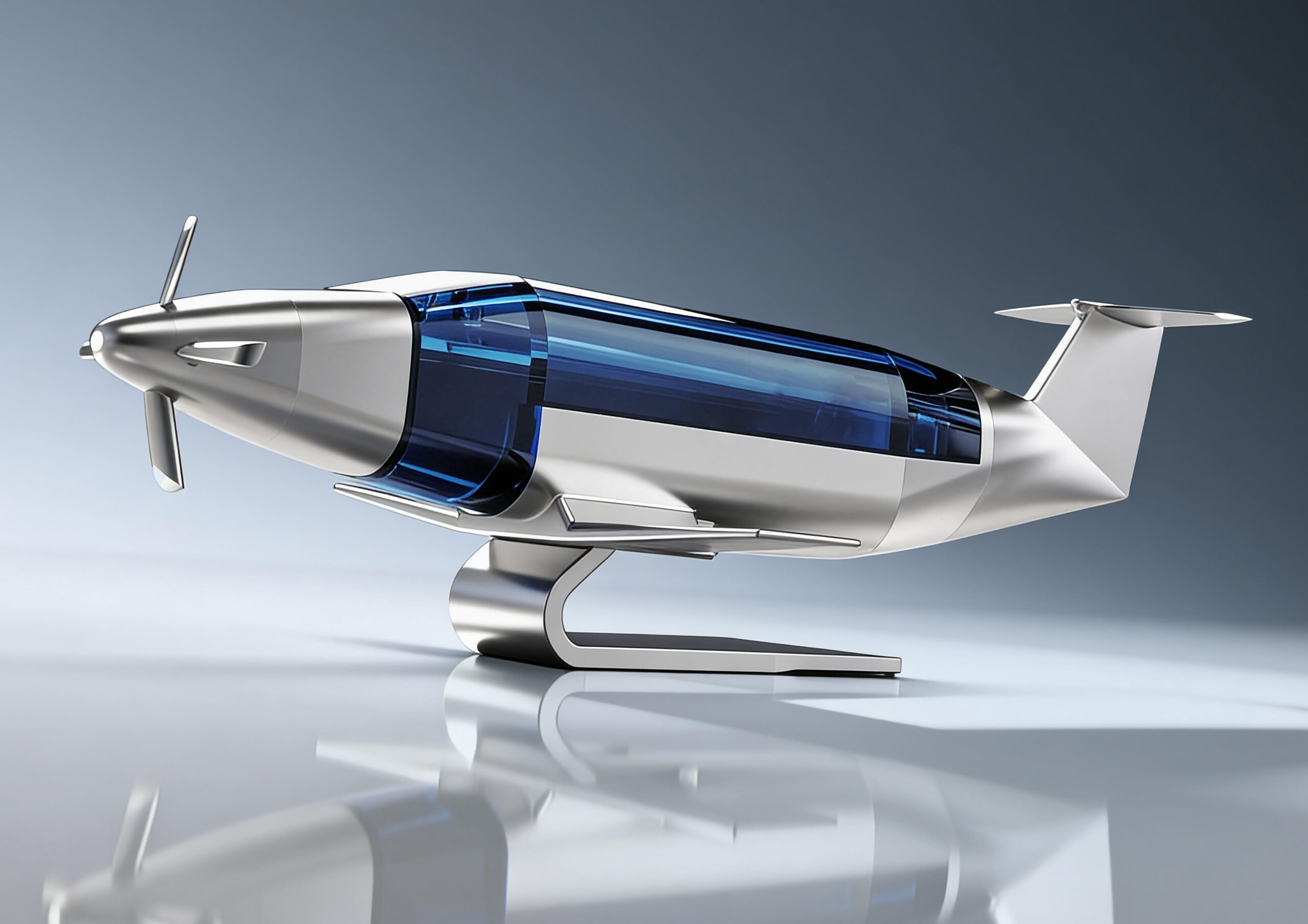 Mission Parwaaz celebrates Pakistani celebrity Fakhr-e-Alam’s round-the-world journey in a small aircraft. We were commissioned to create a commemorative piece that honoured this achievement, with a glass plane crafted to closely resemble the original aircraft. A custom outer plastic casing houses an 80ml perfume bottle that slides into place and locks securely. The bottle is finished with a heavy matte zamac cap, and the fragrance is presented in a luxury rigid box.