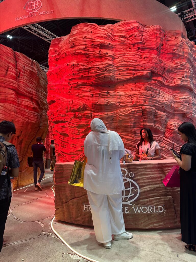 There was plenty of competition this year at Beautyworld 2025 for the best stand. The stakes were really raised, as most of the established Dubai perfume companies took huge stands and spent extraordinary amounts of money to decorate them. Armaf had a beautiful bling effect dangling from the ceiling to coincide with its launch of Club de Nuit bling. As well as having the Armaf stand, Sterling perfumes took three more huge stands as title sponsor. This included Cosmo cosmetics, Armaf Beauté and Hamidi stands. Arabiyat prestige from My Perfumes chose oriental splendour and luxury to match the style of its brand. However, Fragrance world decided to go back in history to somewhere in deepest Arabia like Petra. We were deep inside caves in sandstone mountains to find pure Arabian heritage. This year laparfumgalleria also took a big stand and made its presence truly felt for the first time.