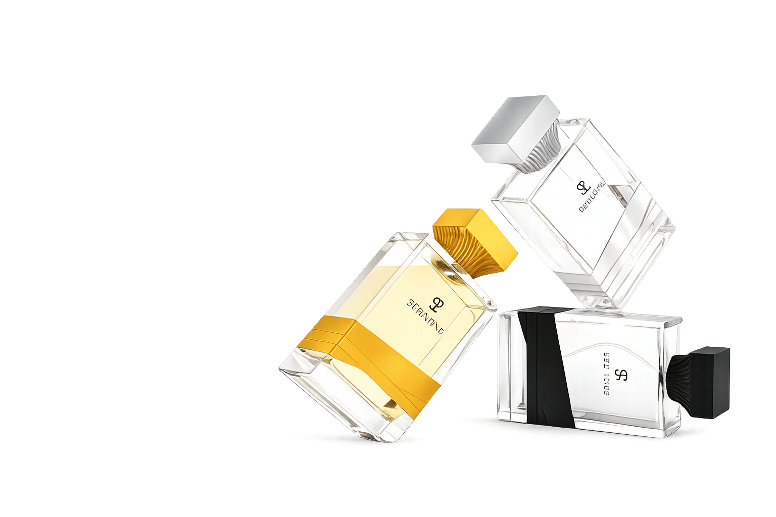 Inspired by the beauty of oriental design, Alyssa perfume bottle is a heavy glass bottle with a metal plate. A zamac cap adorns the bottle. Alyssa perfume set is available to buy, it is a ready mould by Anisha, you can decorate in the colours you like to match your requirements. Shown here in matte finish, the bottle can be decorated in a range of different colours and finishes.